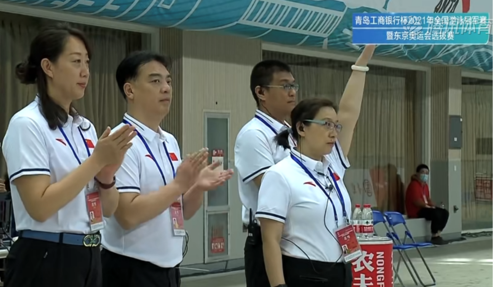 作为本次冠军赛女子项目的执行总裁判,温宇红教授有三十余年的丰富执裁经历,曾多次任国际国内重大游泳赛事的执行总裁判。她认为要成为一名优秀的裁判员,要在执裁过程中做到“严肃、认真、公正、准确”,并坚持在每场比赛中贯彻这一理念。为保障比赛能在公平公正公开的环境下进行,在赛前开展的裁判员培训中,温宇红教授将一些世界上先进的技术动作以及可能存在的犯规动作认真地向裁判员讲解,力求在每一次的判罚过程中做到严谨公正。